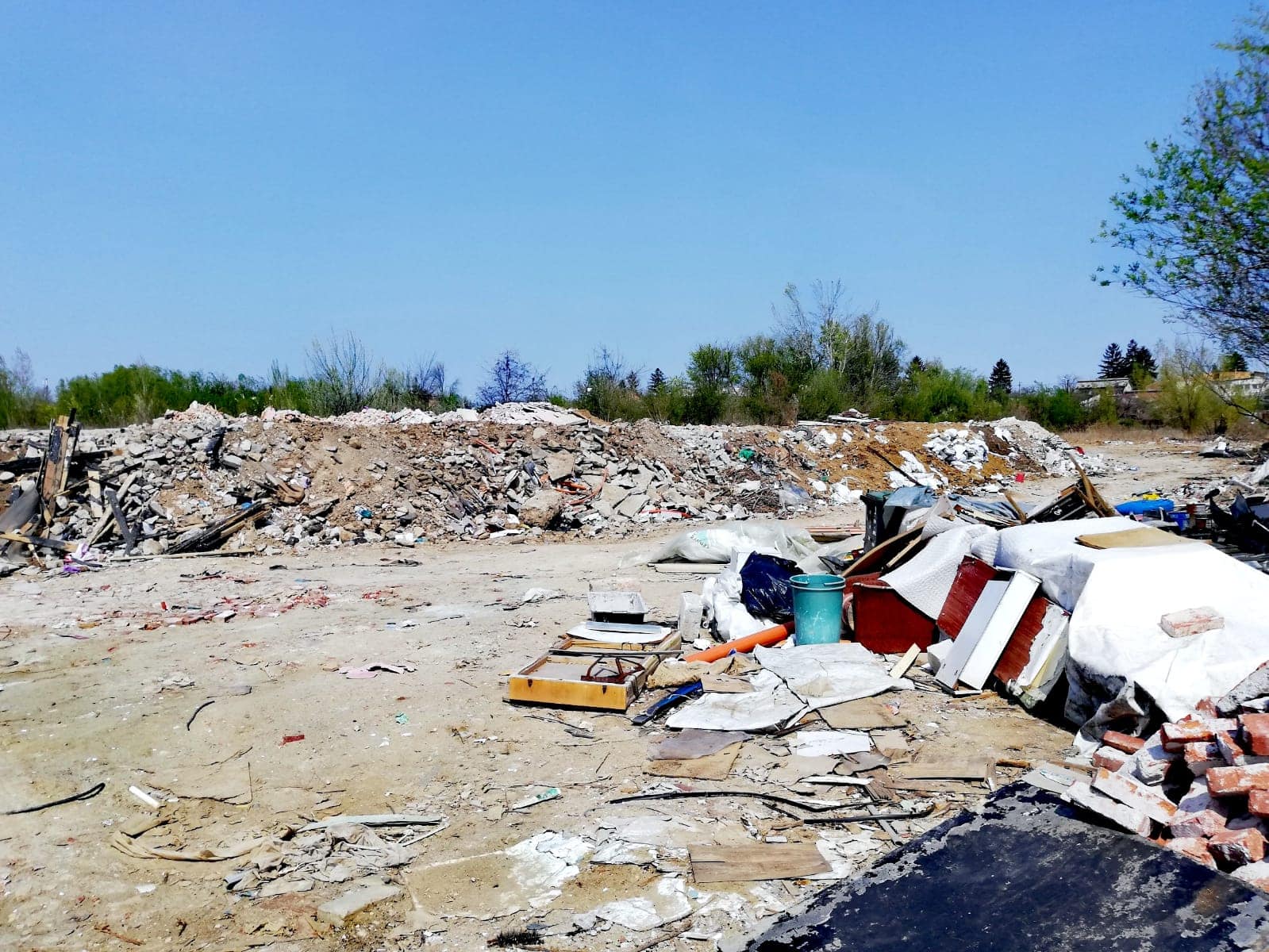 La câteva zeci de metri mai încolo de această groapă de gunoi ilegală, dăm peste un alt depozit clandestin de deșeuri. Mai exact, este vorba despre o platformă de câteva sute de m2, cu o înălţime de peste doi metri. Peste tot se vad urmele utilajelor grele care nivelează şi compactează molozul adus. Deşi mai tot timpul acolo este un furnicar de oameni şi mașini, în ziua în care ne-am deplasat la faţa locului, nu am mai găsit nimic. În afara munților de moloz.