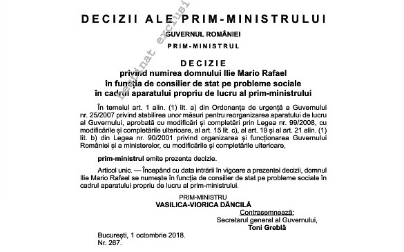 Premierul Viorica Dăncilă l-a numit la 1 octombrie în funcția de consilier pe probleme sociale pe Ilie Mario Rafael, fost șef de cabinet al lui Codrin Ștefănescu, după cum rezultă dintr-o decizie publicată în Monitorul Oficial. ”Cel care s-a ocupat ca Liviu Dragnea să fie escortat de la Înalta Curte a fost Mario Rafael, personaj inventat politic de Marian Vanghelie, trecut pe la PDL şi ajuns şeful de cabinet al lui Codrin Ştefănescu”, dezvăluia anul trecut ziarul Adevărul.